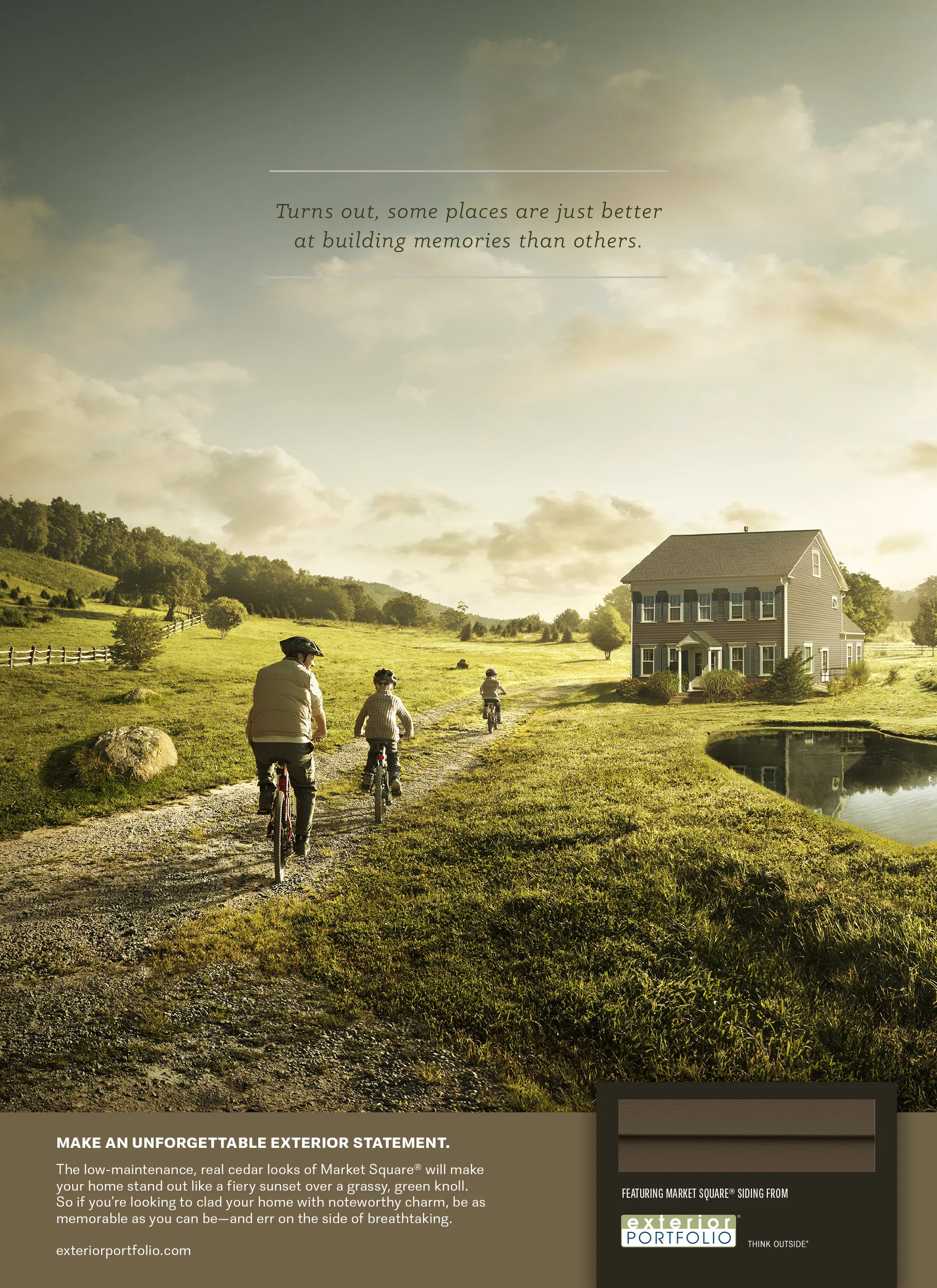 Royal Building Products asked us to relaunch their subsidiary brand, Exterior Portfolio. In our research we hit on the insight that homeowners improving the interiors of their homes outspend homeowners improving the exteriors of their homes by more than double. Entertaining, playing, cooking, swimming, relaxing; people spend a lot of time with the outside of their home. Everyone has fond memories of their home, shouldn't the memories made outside be as beautiful as the memories made inside?