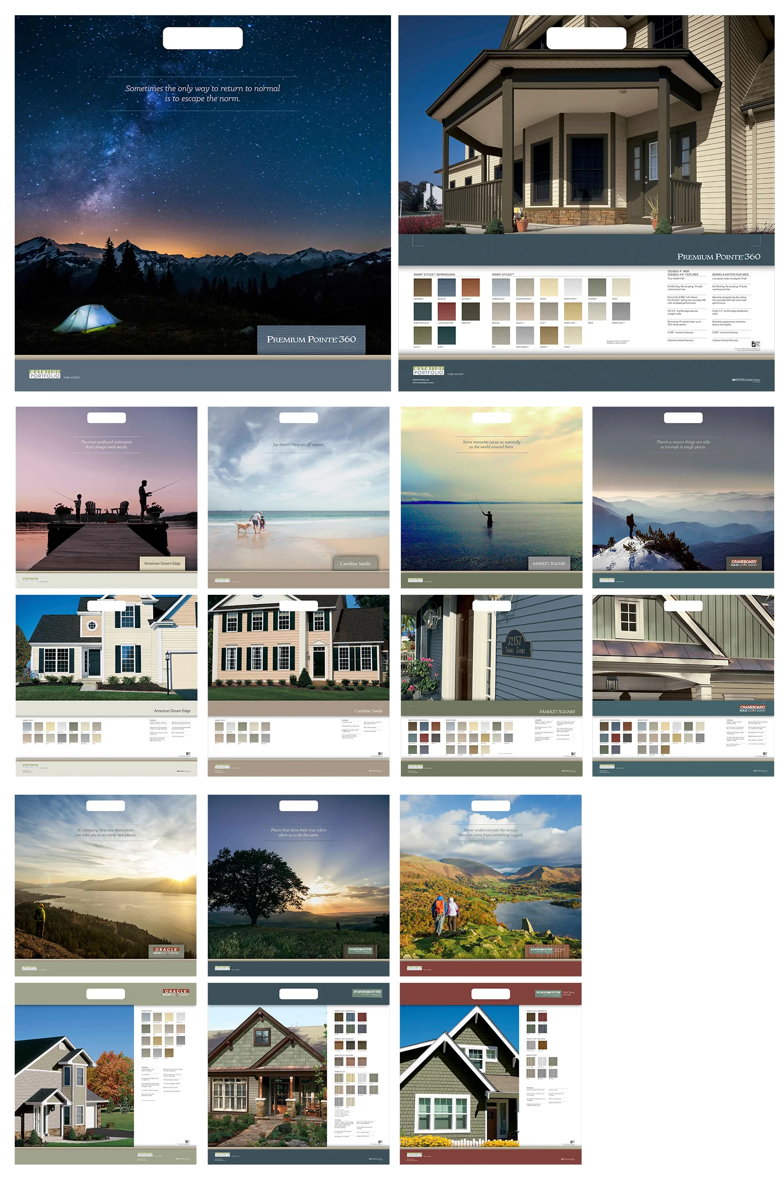 We continue the same idea throughout the brand collateral. Sales materials push meditations on life to the foreground rather than the beauty shot of a home, which is typical for the market.